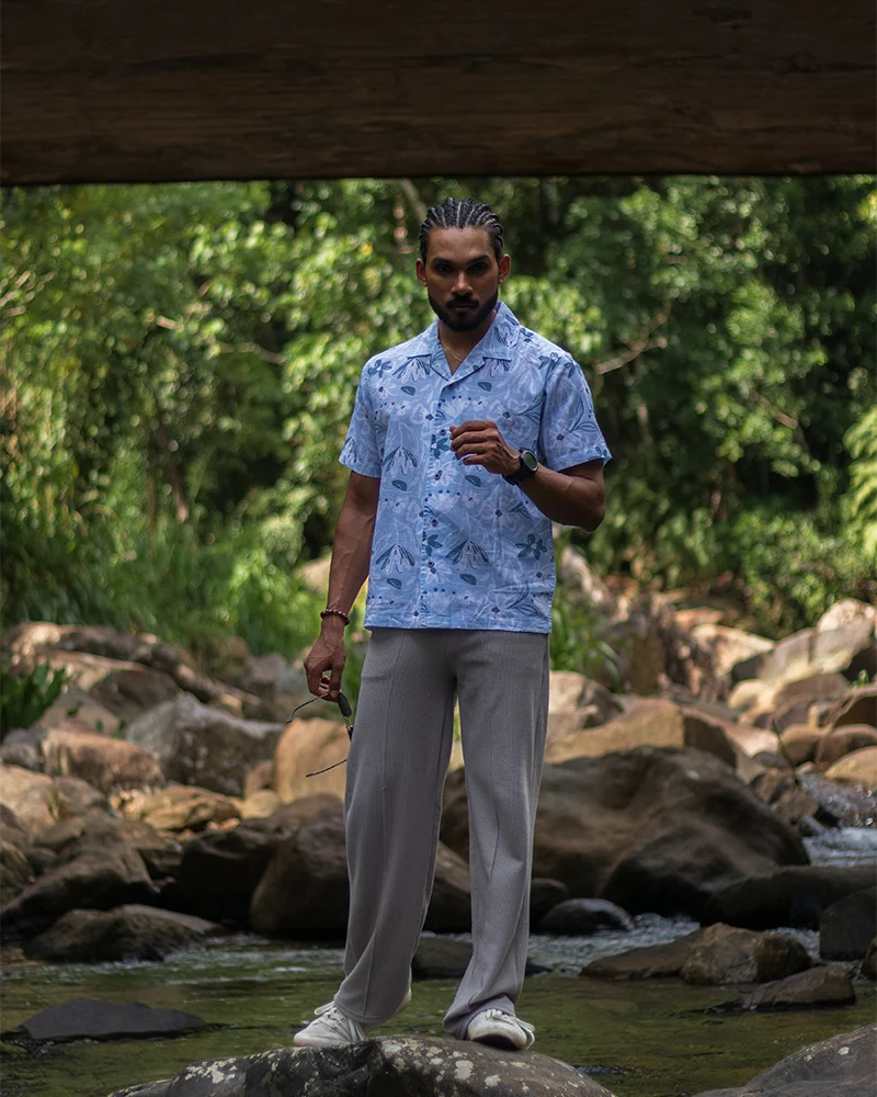 Flora Crest Edition Shirt — lightweight (140–160 GSM), Cuban collar, and a refined floral crest design.