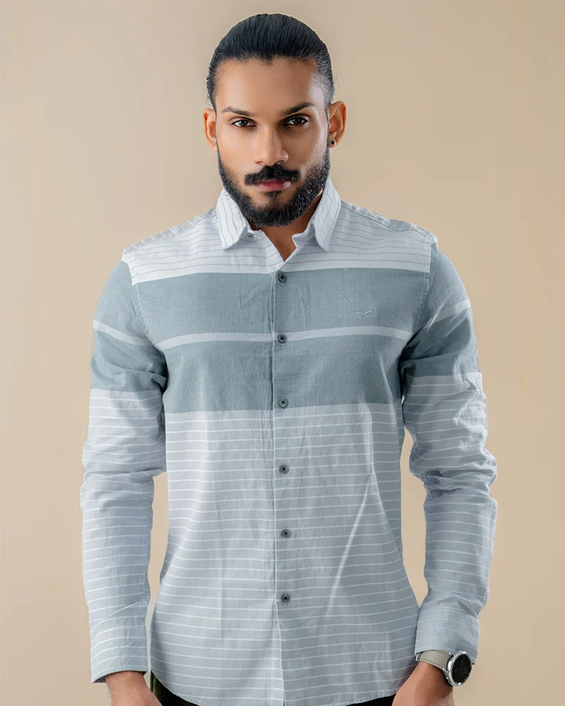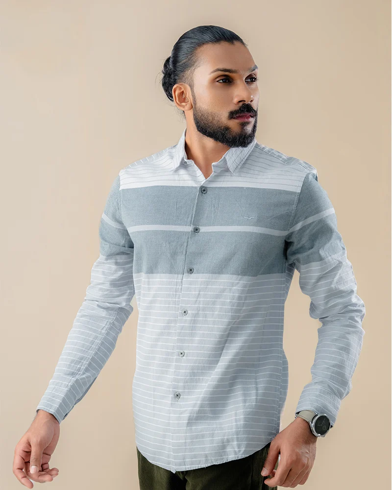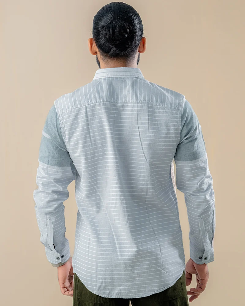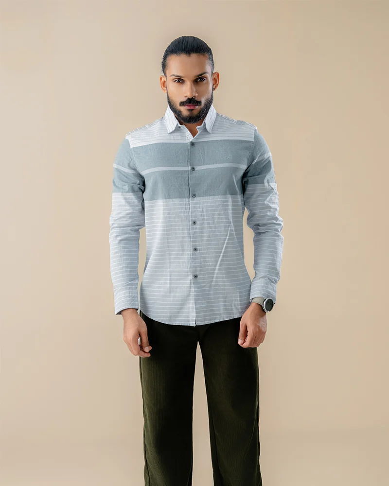✔ Linear Visual Logic: The Horizontal BlueStone stripes are carefully aligned to create a lengthening effect, enhancing the shirt’s streamlined, smart-casual appearance.