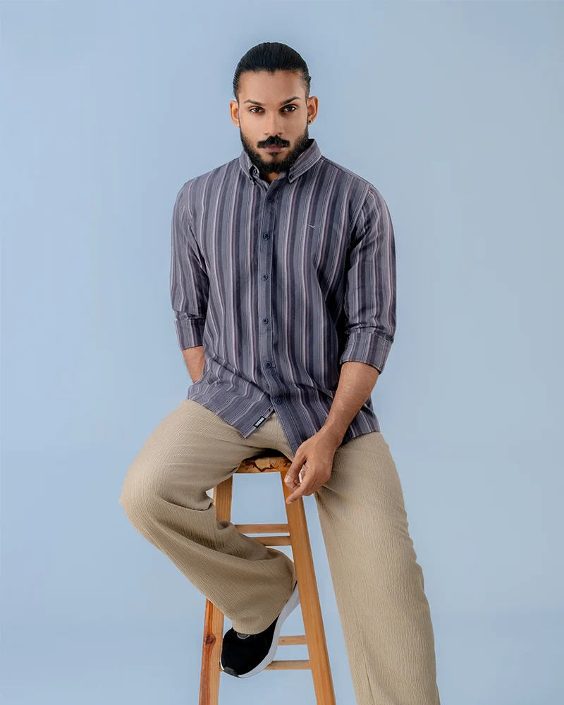 ✔ Precision Pattern Matching: The LavenderSlate stripes are carefully aligned during the cutting process to ensure a clean, continuous flow across the shirt, especially at the pocket and placket, delivering a neat and well-balanced look.