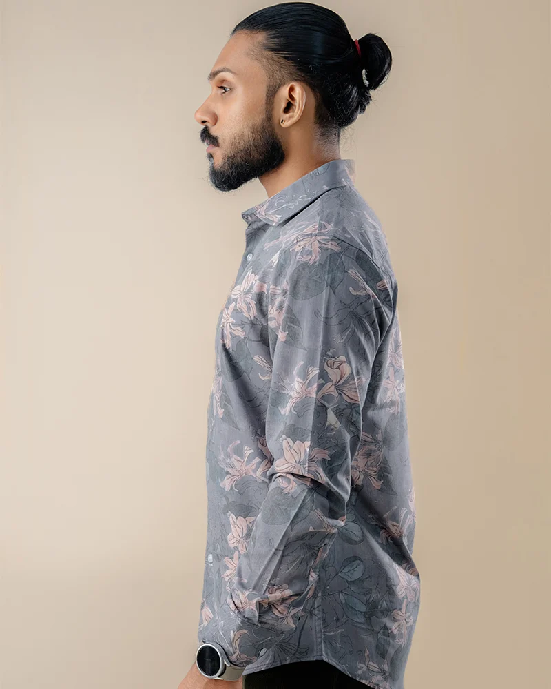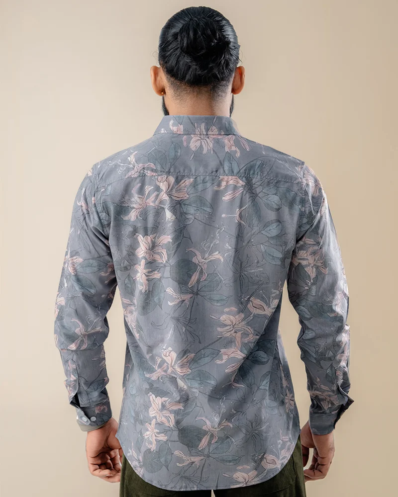 The LilyMist Floral Shirt by iKING is designed for casual and smart-casual wear with a refined, artistic edge. Its LilyMist pattern blends soft blues, misty greys, and pale whites into a subtle floral design that is elegant yet visually engaging. The slim-fit silhouette provides a close-to-body, streamlined shape, making it perfect for relaxed outings, evening gatherings, or stylish smart-casual occasions.
