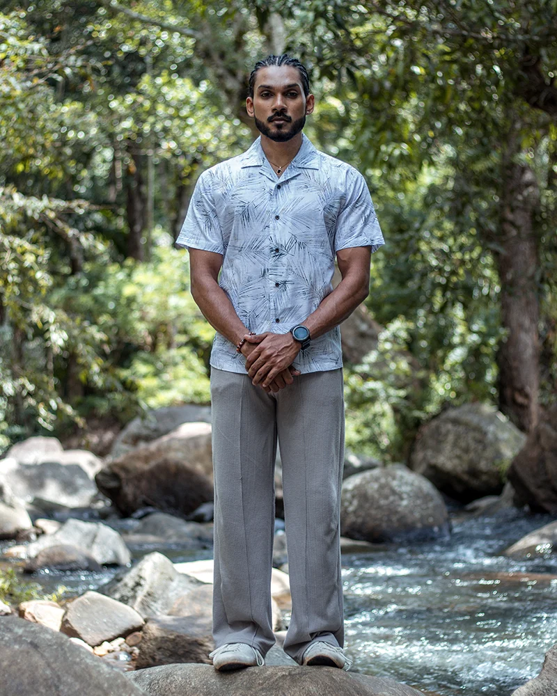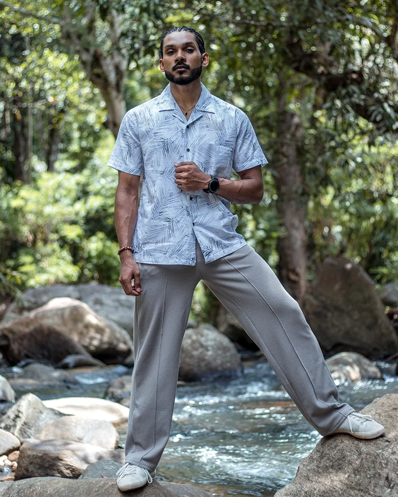 Engineered for the modern escapist, the Midnight Teal Palm Shirt by iKING balances effortless leisure with high-performance tailoring. Designed for the individual who values a clean, balanced shape, this piece delivers a sharp yet relaxed silhouette that pairs perfectly with textured trousers, linen shorts, or layered weekend looks. Utilizing a high-density cotton-linen blend, it offers a structured, opaque finish that remains exceptionally airy for tropical climates.