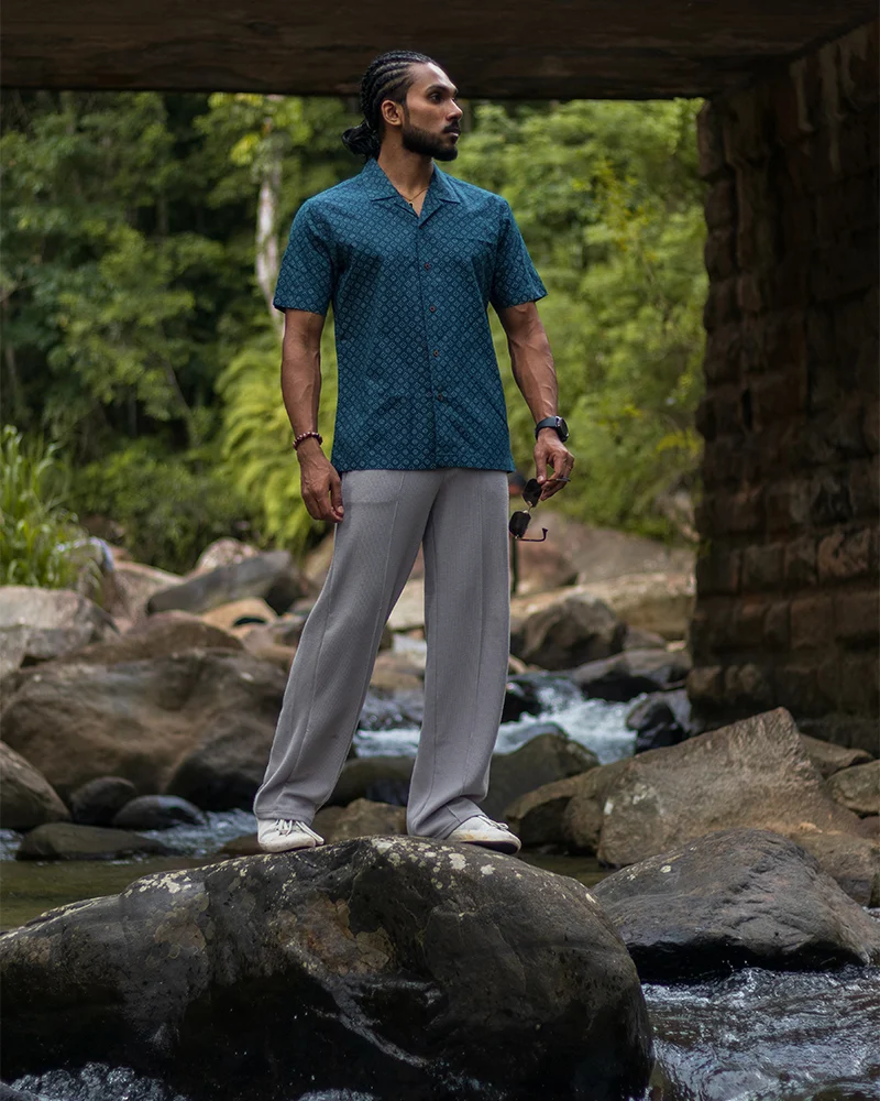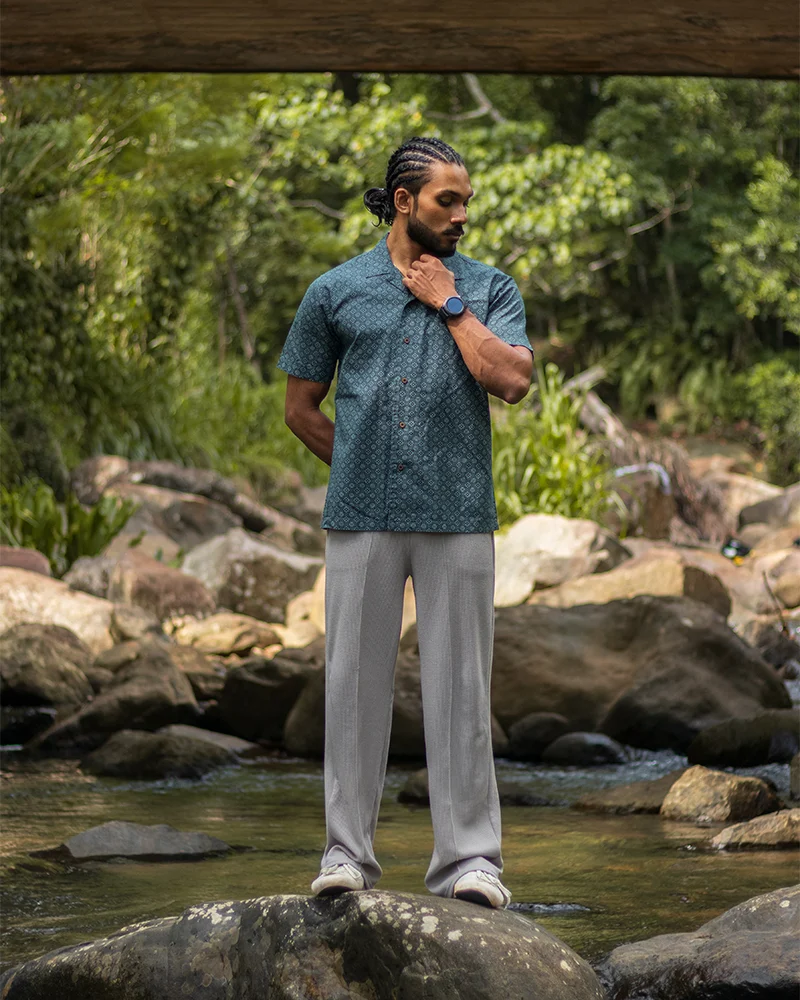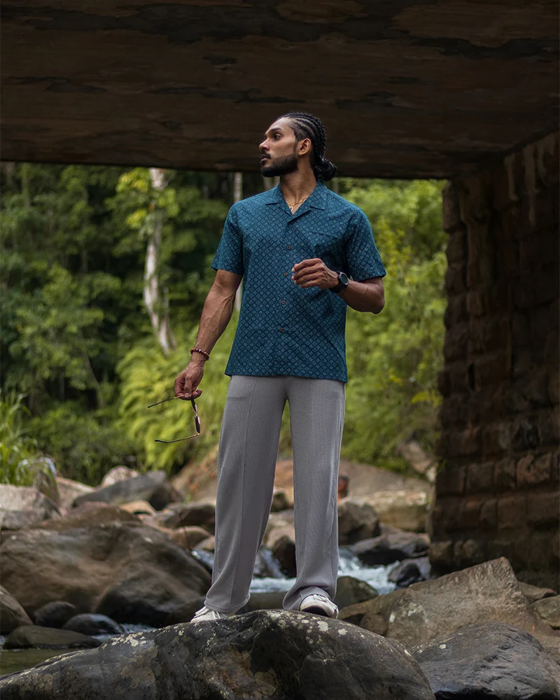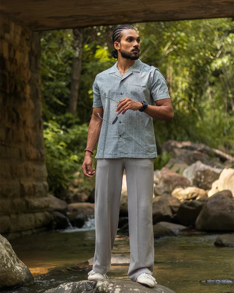Mosaic Bloom Edition Shirt — lightweight (140–160 GSM), Cuban collar, and a unique mosaic-inspired floral design.