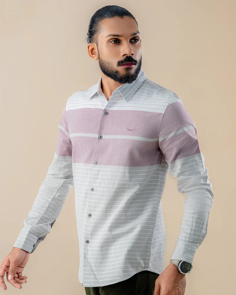 The SoftBloom Stripe Shirt is a premium long-sleeve garment featuring a soft, pastel-inspired Horizontal stripe. Crafted from 100% pure cotton with a 180 GSM weight, it has a sharp slim fit that provides a sleek, casual-to-smart-casual silhouette. Ideal for stylish everyday wear in Sri Lanka, it offers durability, breathability, and a polished yet relaxed aesthetic.
