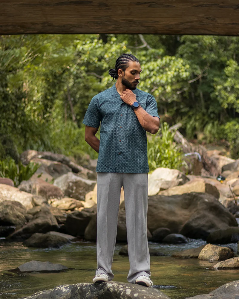 The Teal Mosaic Geometry Shirt by iKING is engineered to balance heritage artistry with contemporary tailoring. Designed for the individual who values a bold yet sophisticated aesthetic, this piece captures the 2026 demand for “heritage-inspired prints” and “abstract motifs.” Utilizing a high-density cotton-linen blend, it offers a structured, opaque look that remains exceptionally breathable for tropical climates and coastal retreats.