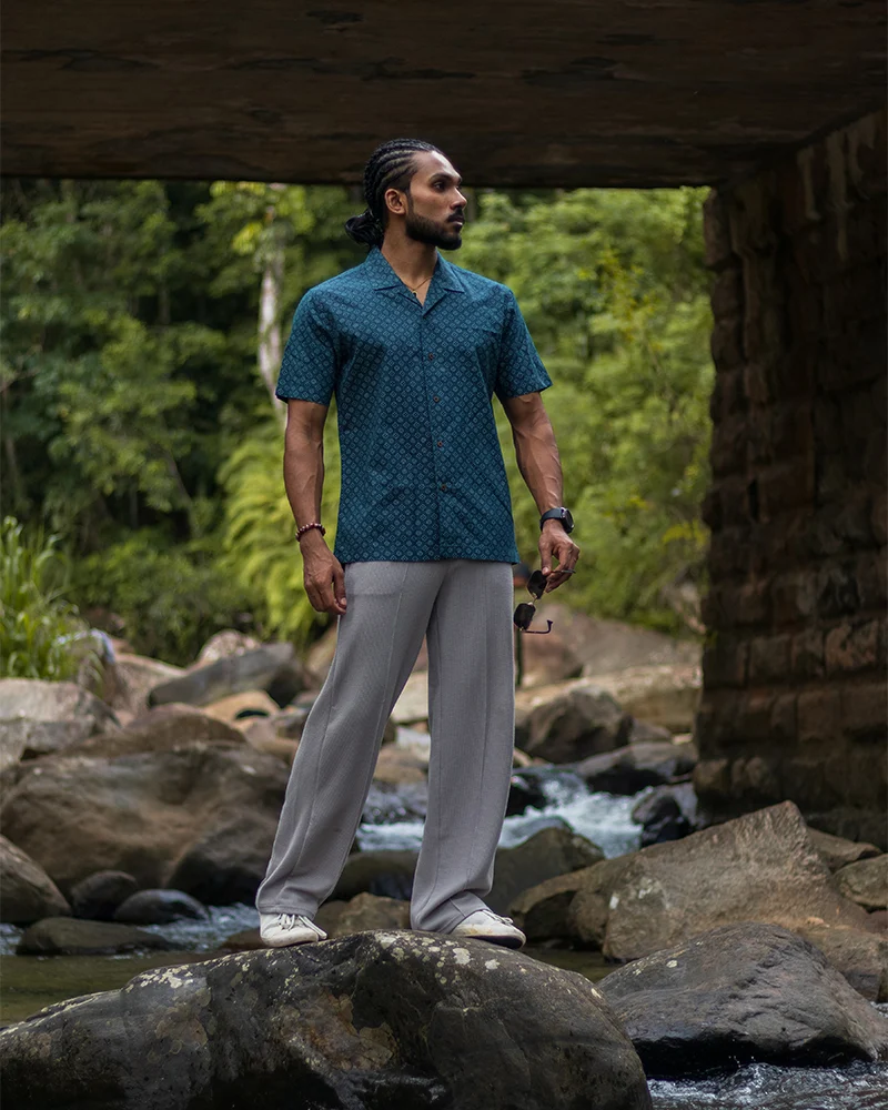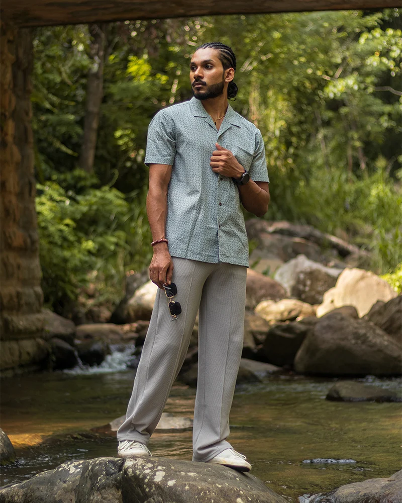Featuring a sleek grid-pattern design, the shirt blends contemporary flair with classic comfort. The Cuban collar, short sleeves, and relaxed fit ensure a laid-back yet refined look, making it ideal for vacations, casual outings, or evening gatherings. Pair it effortlessly with chinos, denim, or shorts for a polished urban vibe.